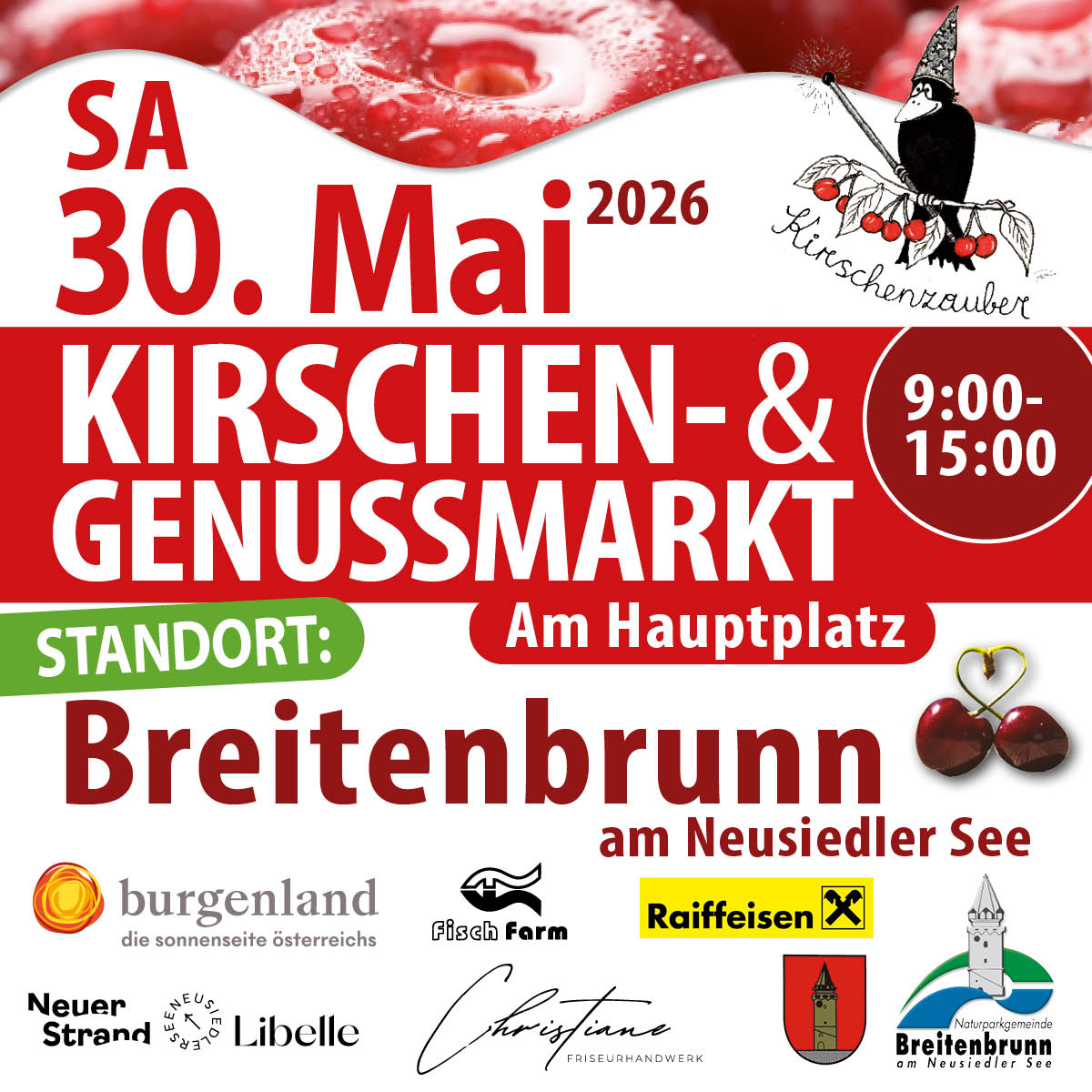 Ein regionaler Markt, Kirschkern-Weitspuckwettbewerb und Kunsthandwerk aus der Region sind die Zutaten zum Kirschen- und Genussmarkt in BREITENBRUNN.
